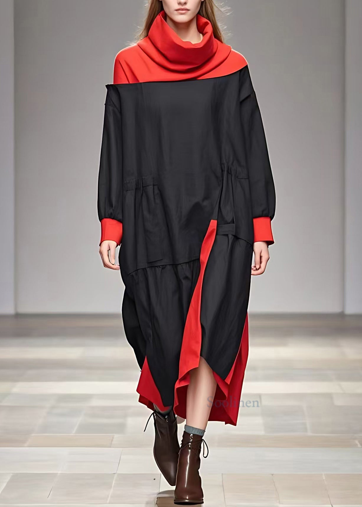 DIY Black Turtleneck Patchwork Holiday Long Dress Fall