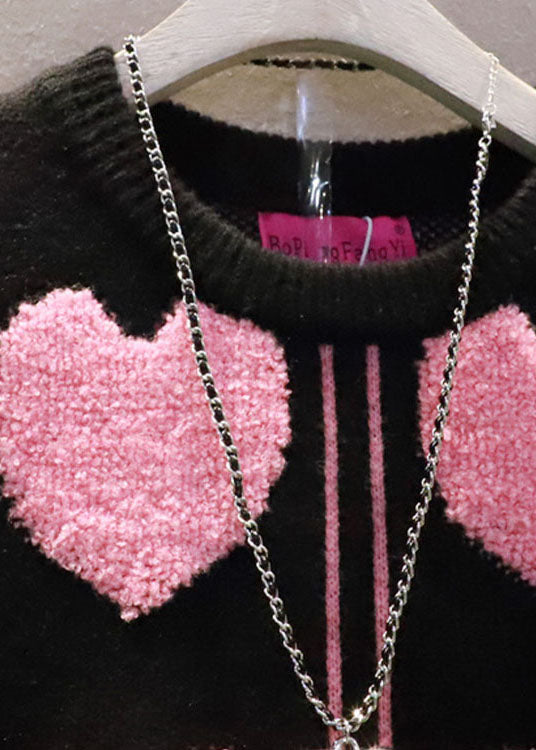 Fashion Black Oversized Loving Heart Jacquard Long Knit Dress Winter