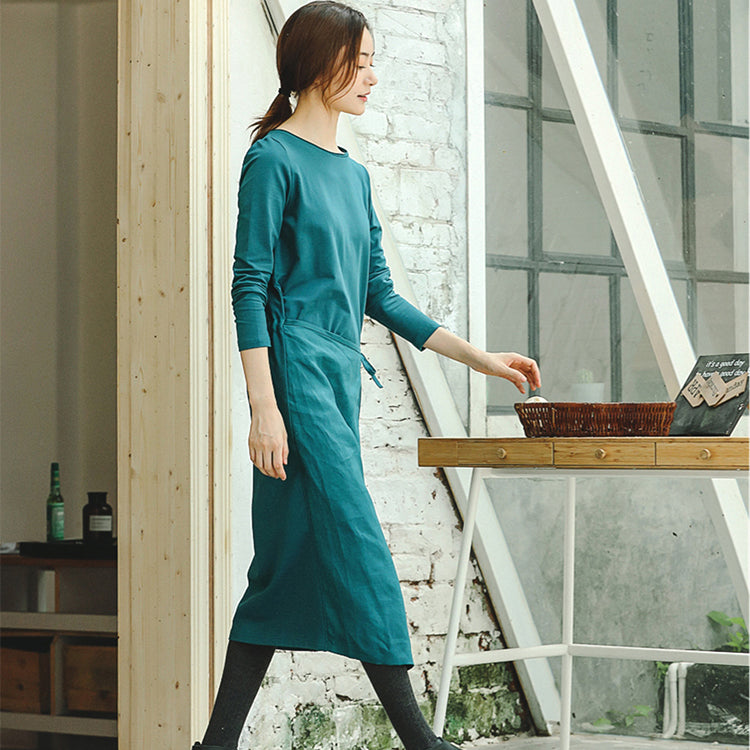 This dress is made of cotton or linen fabric, soft and breathy.