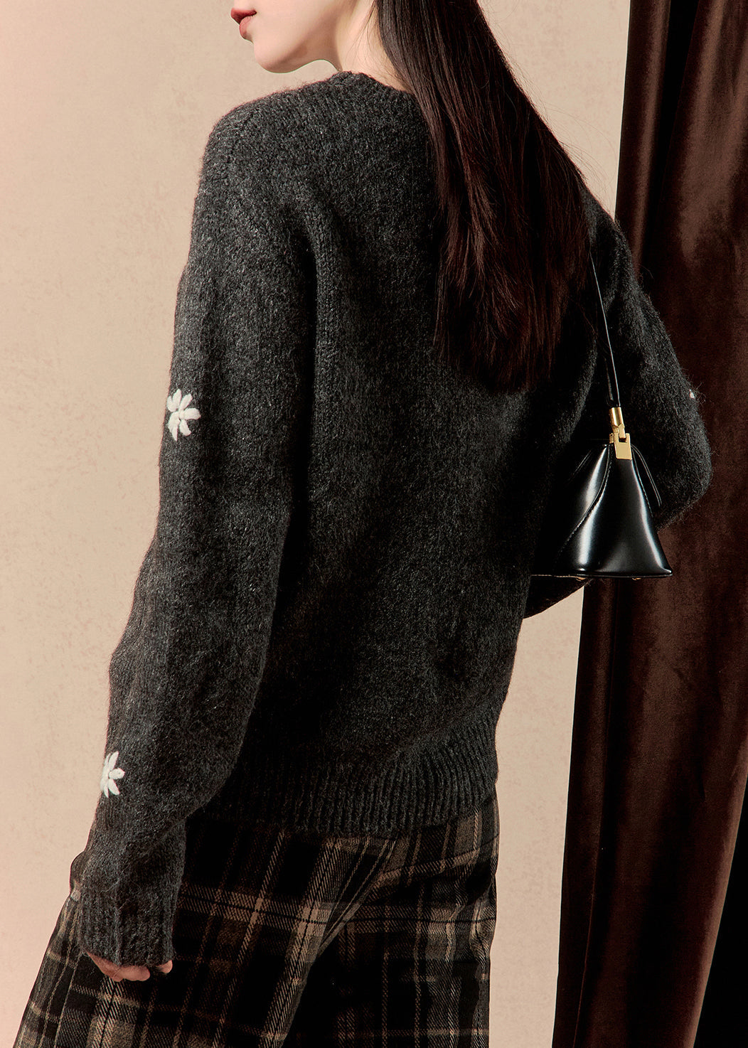 Floral Grey O Neck Cozy Thick Cotton Knit Sweater Winter