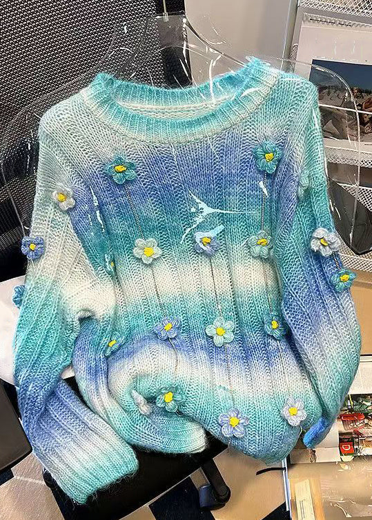 Floral Orange Gradient Color Hollow Out Knit Sweaters Spring