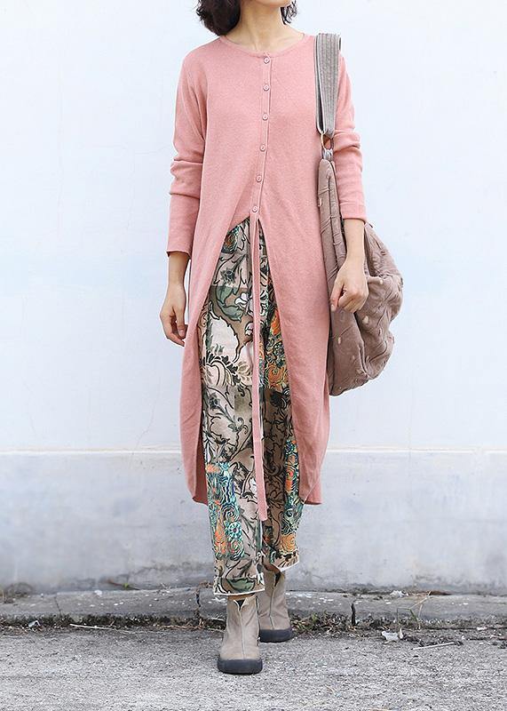 For Work pink knitted cardigans plus size clothing o neck sweaters asymmetric