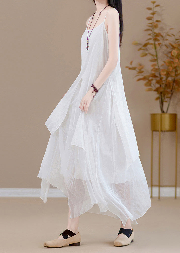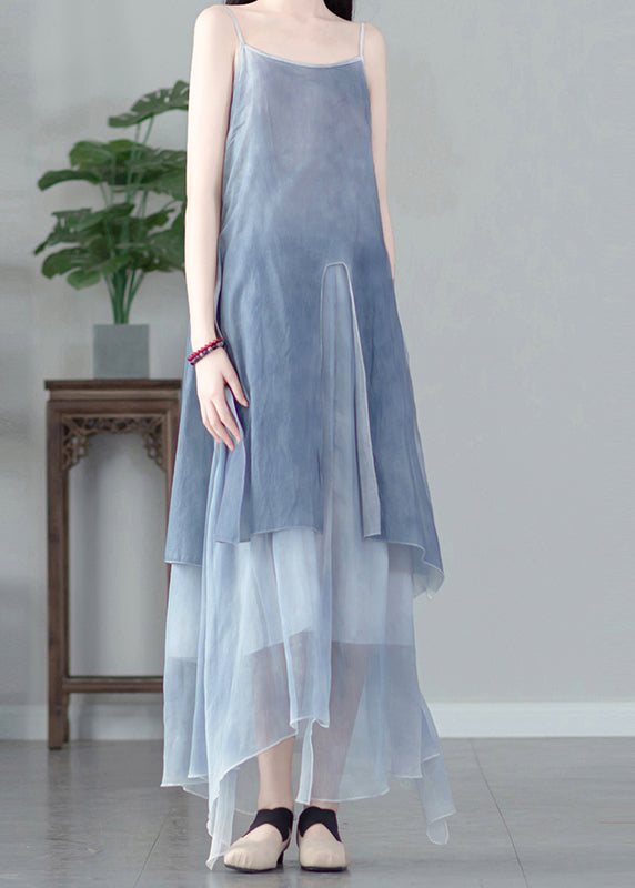 French Khaki Asymmetrical Patchwork Cotton Spaghetti Strap Dress Sleeveless