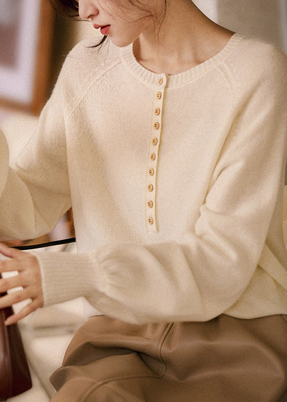 French Pink O Neck Button Cozy Knit Sweater Spring