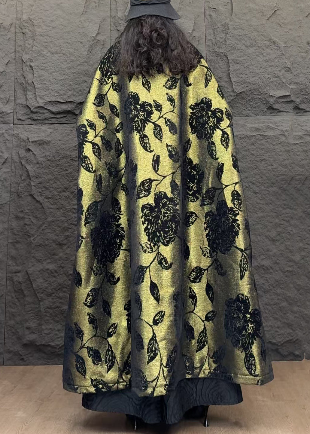 Gold Pockets Loose Cotton Filled Parka V Neck Winter