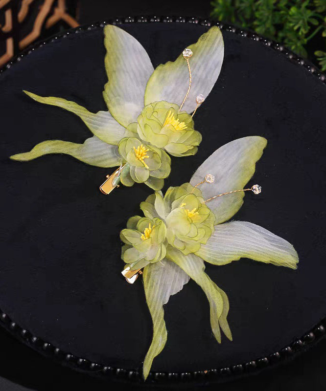 Gradient Color Light Green Alloy Organza Butterfly A Pair Hairpin