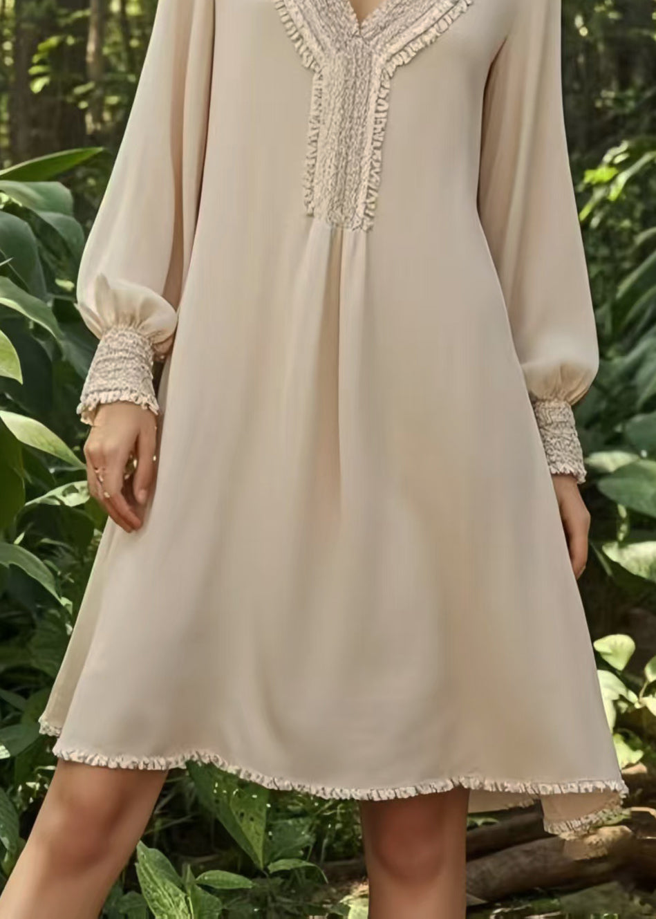 Handmade Apricot V Neck Draping Chiffon Day Dress Spring