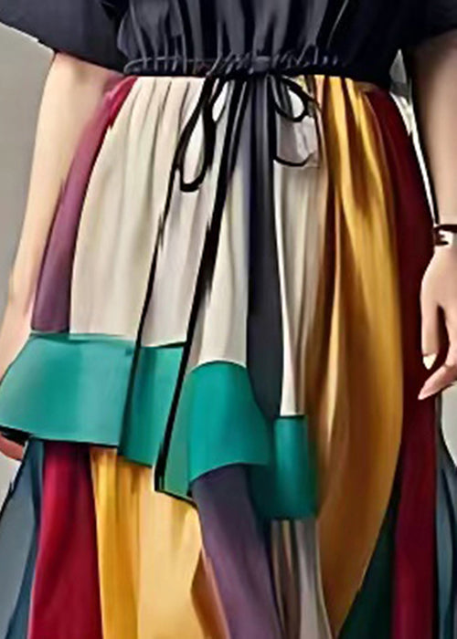 Handmade Black Cinched Patchwork Exra Large Hem Cotton Dress Summer