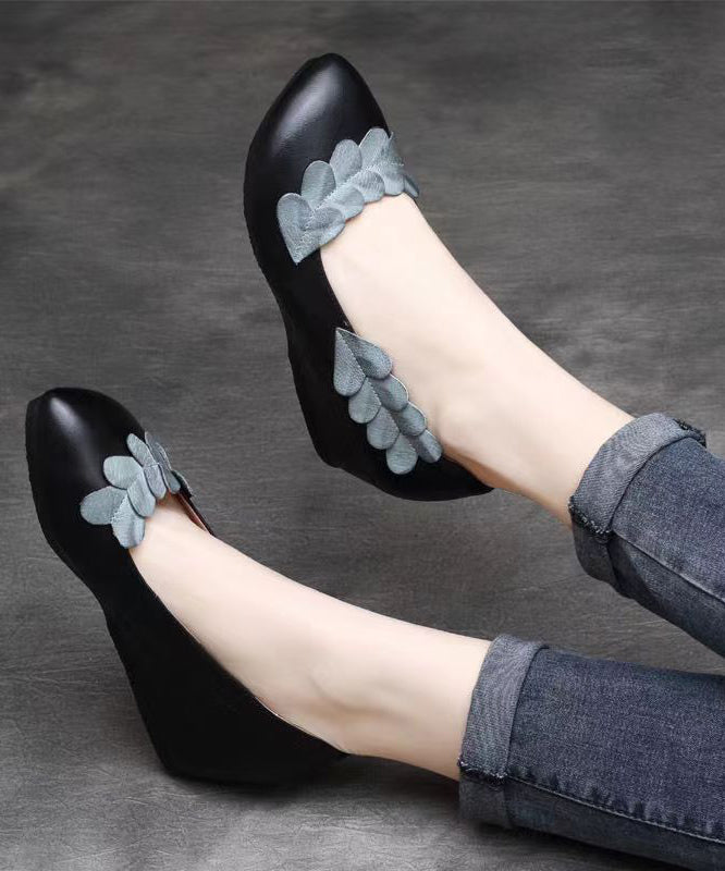 Handmade Retro Brown Wedge Heels Cowhide Leather Splicing Floral