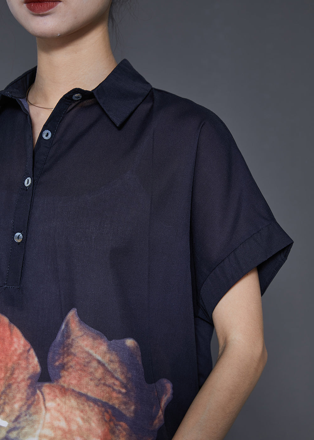 Italian Black Peter Pan Collar Print Cotton Shirt Dress Summer