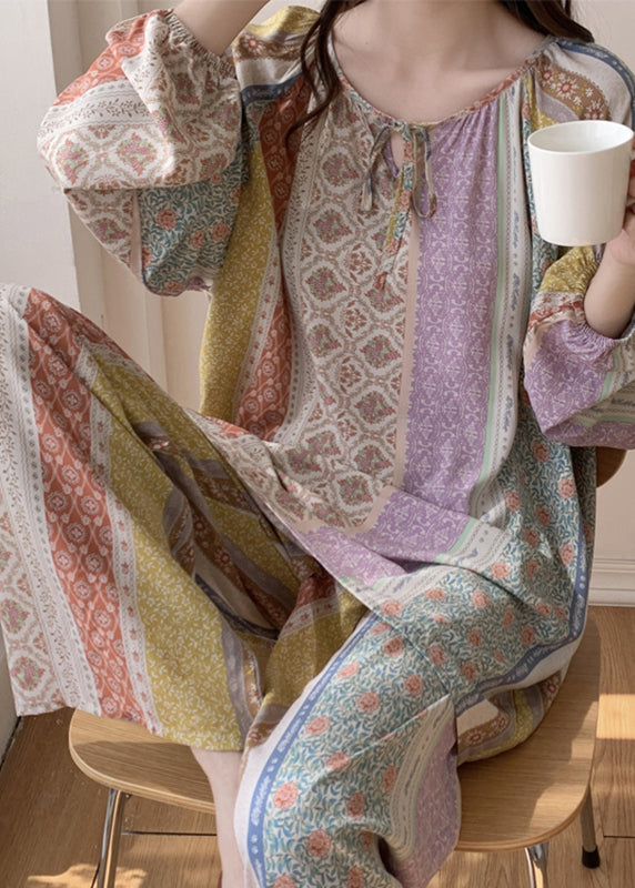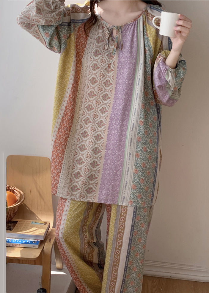 Italian Rainbow Print Lace Tie Silk Velvet Two Pieces Set Spring
