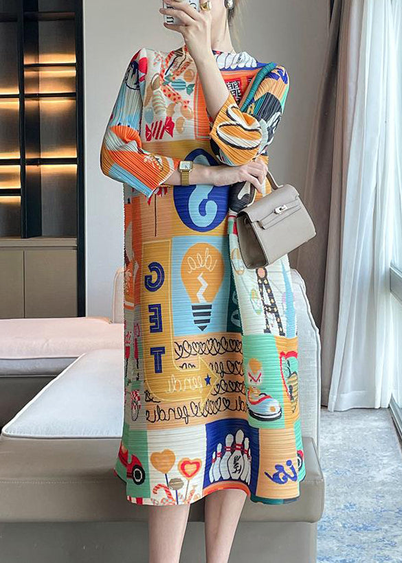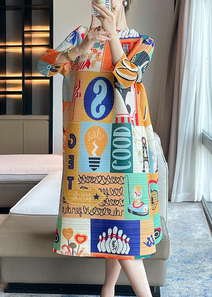 Italian Yellow O-Neck Print Maxi Dresses Bracelet Sleeve