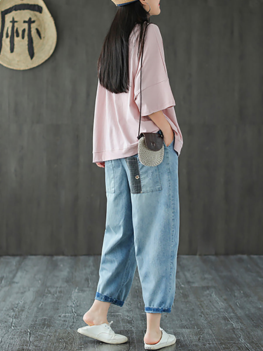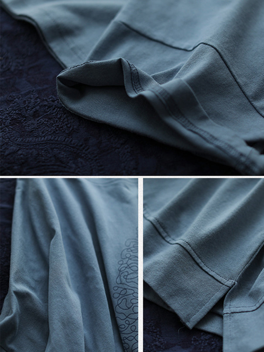 Plus Size - Leaf Printed Summer Half Sleeve Cotton T-shirt