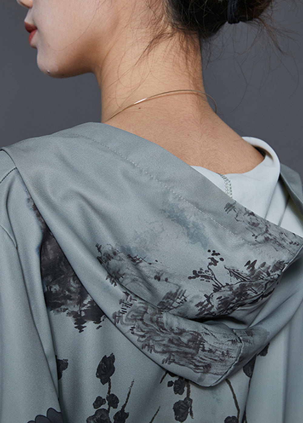 Natural Grey Hooded Ink And Wash Cotton Two Pieces Set Spring
