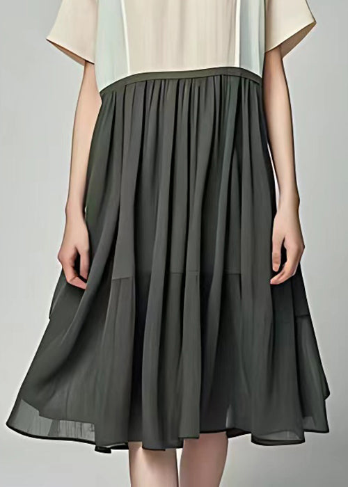 New Apricot O Neck Wrinkled Patchwork Cotton Dresses Summer