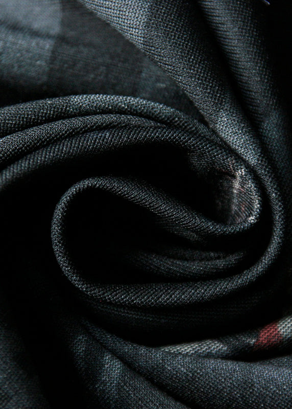 New Black Stand Collar Striped Print Patchwork Cotton Two Pieces Set Fall
