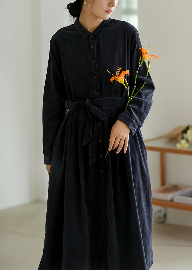 New Light Camel Button Tie Waist Patchwork Corduroy Shirts Dress Fall
