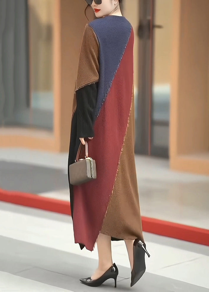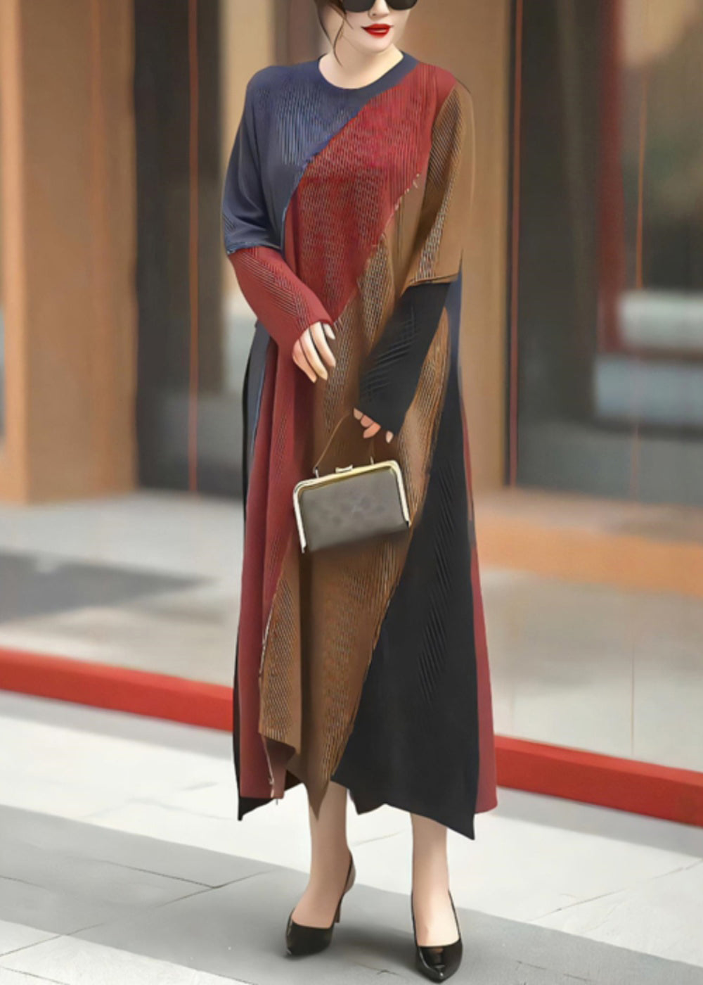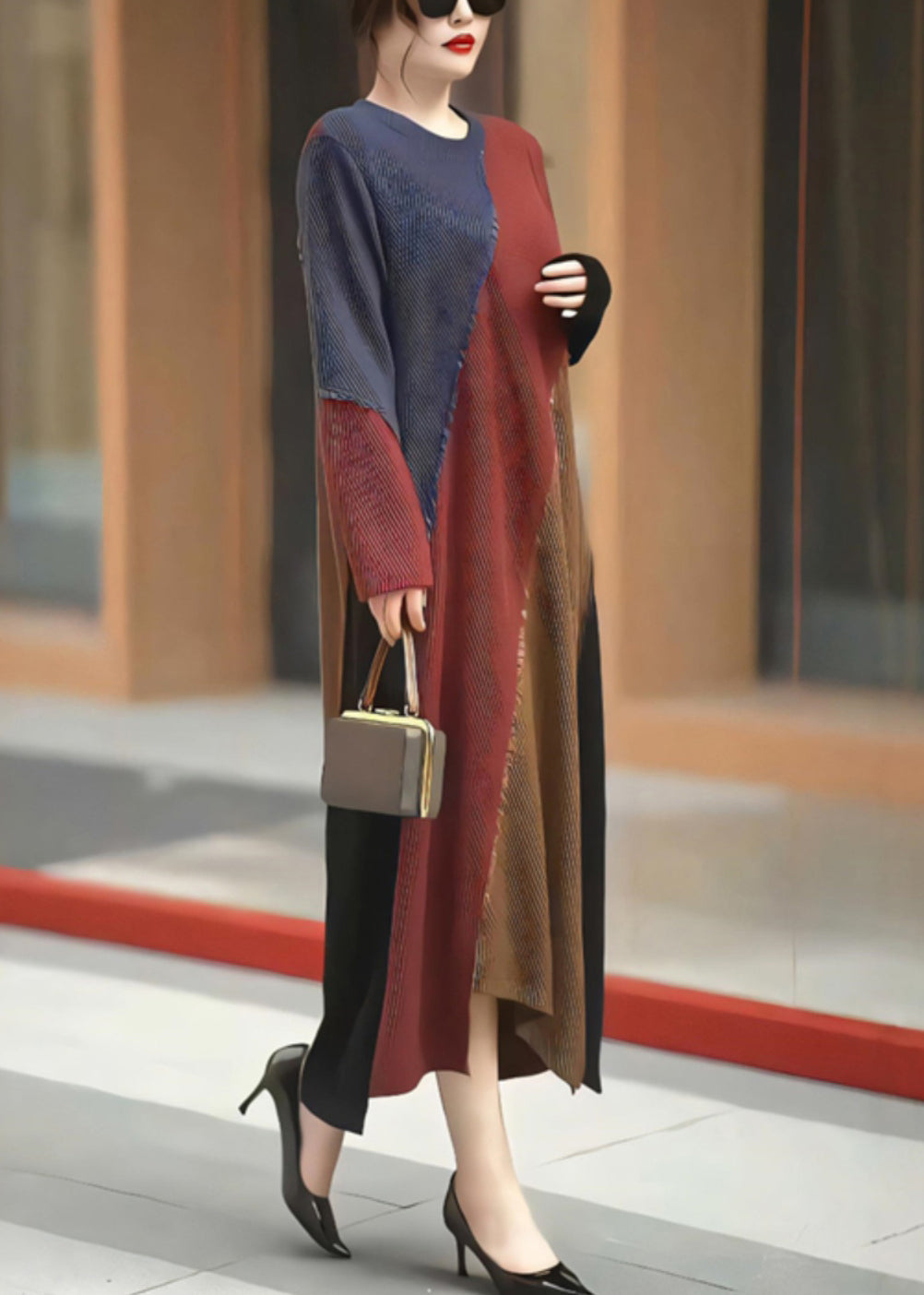 New O Neck Striped Patchwork Knit Sweater Dress Winter