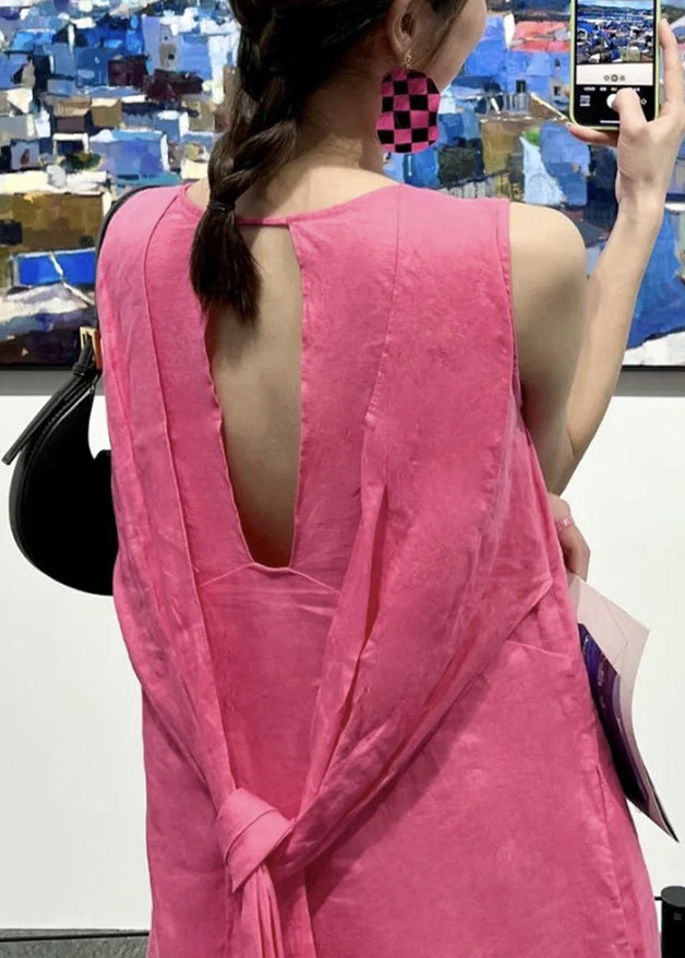 New Rose Pockets Lace Up Linen Dresses Sleeveless
