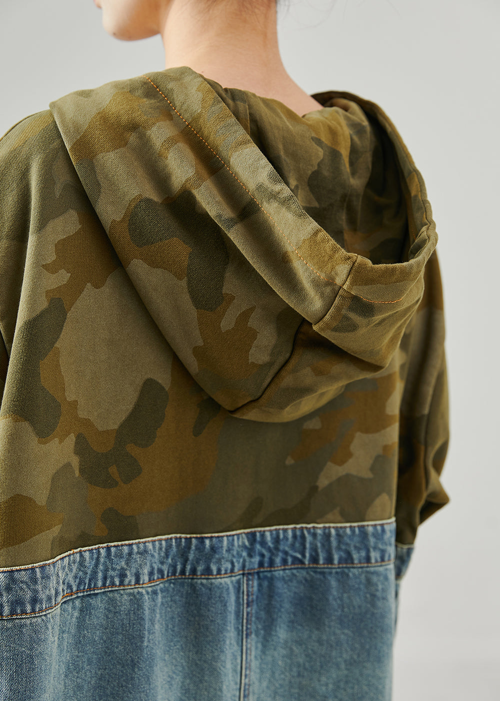 Original Design Hooded Patchwork Denim Maxi Dress Fall