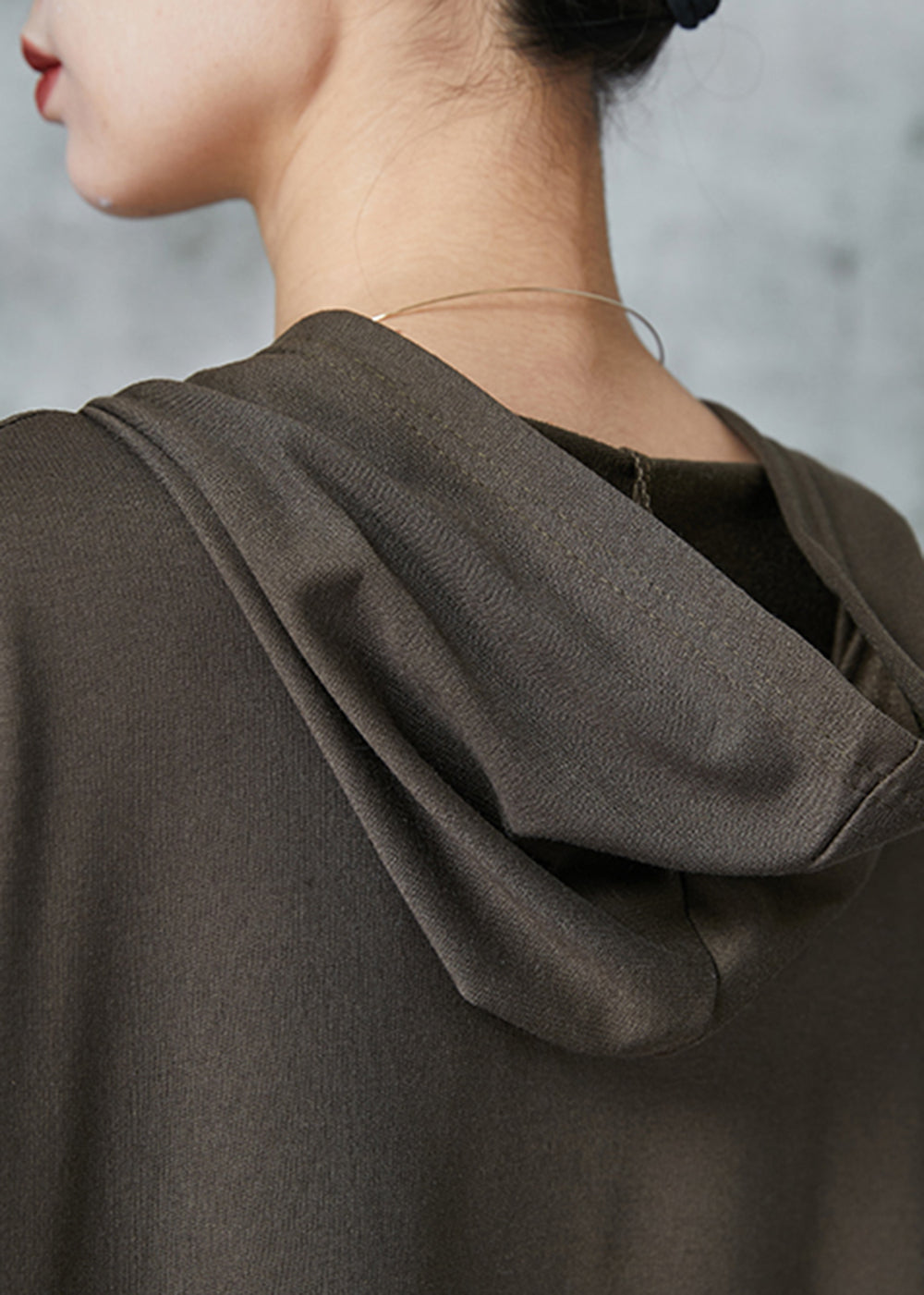 Plus Size Army Green Hooded Pockets Cotton Dress Spring