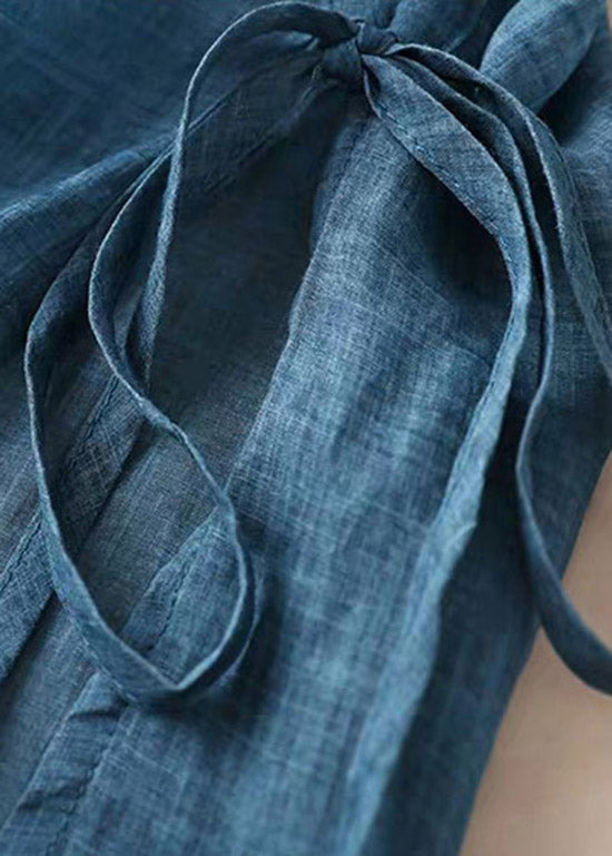 Plus Size Blue O-Neck Embroideried Cotton Dress Short Sleeve