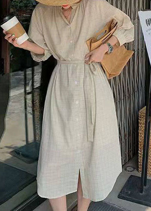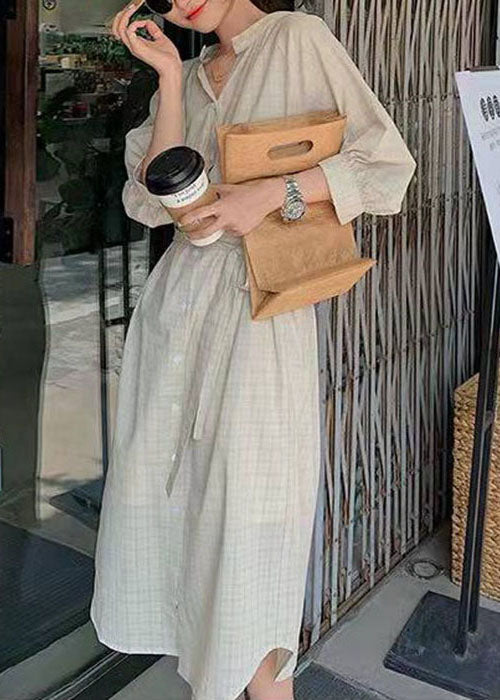 Plus Size Light Green Cinched Plaid Cotton Dress Spring