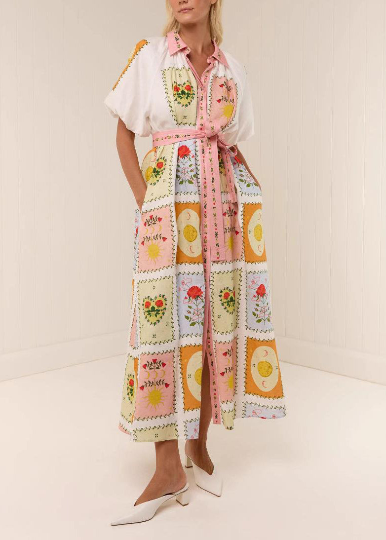 Plus Size Peter Pan Collar Tie Waist Maxi Shirts Dress Short Sleeve