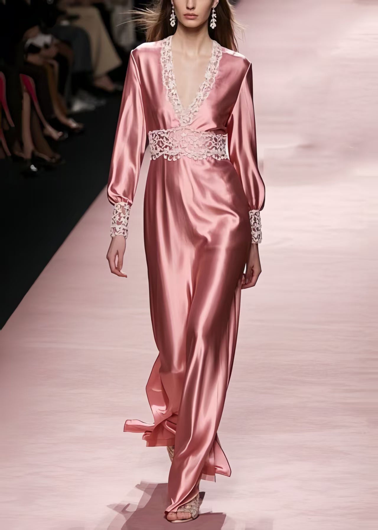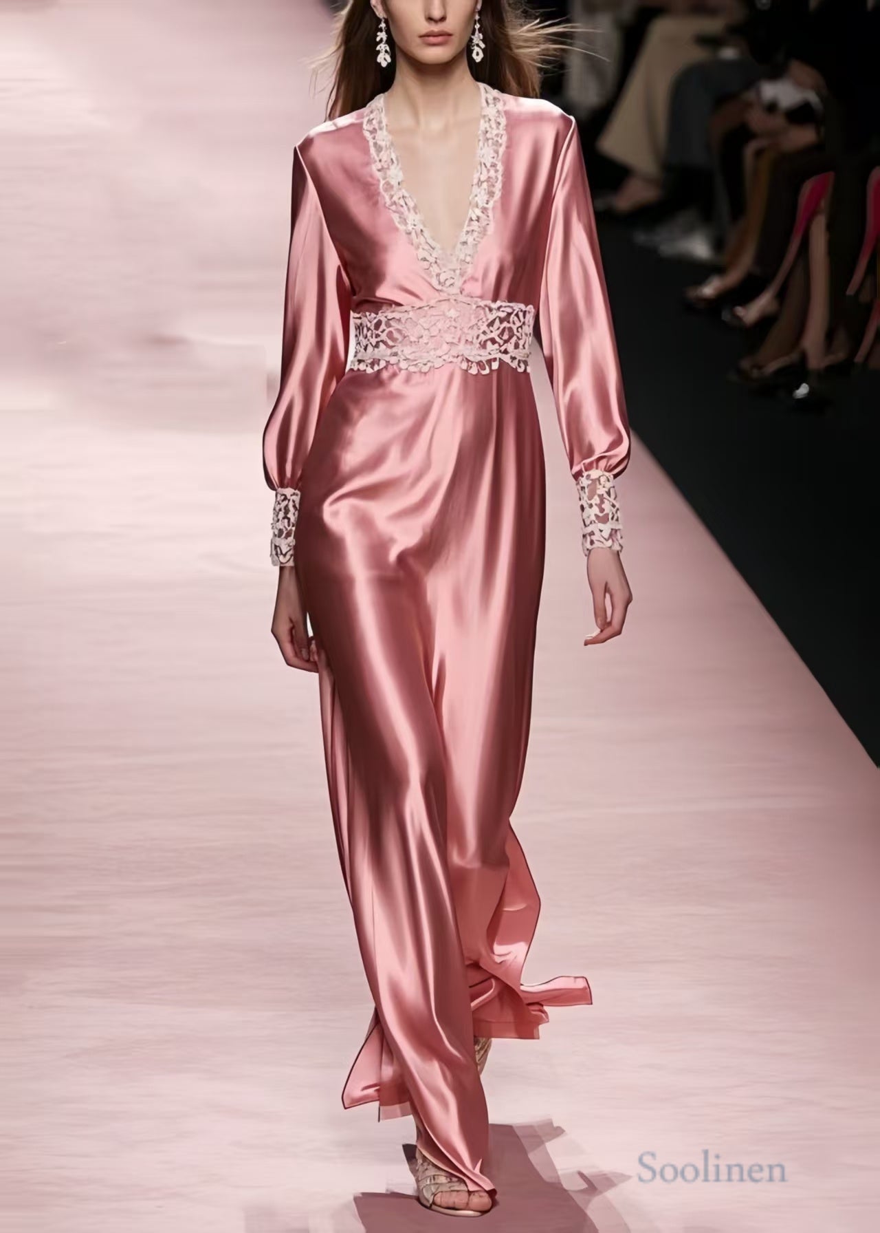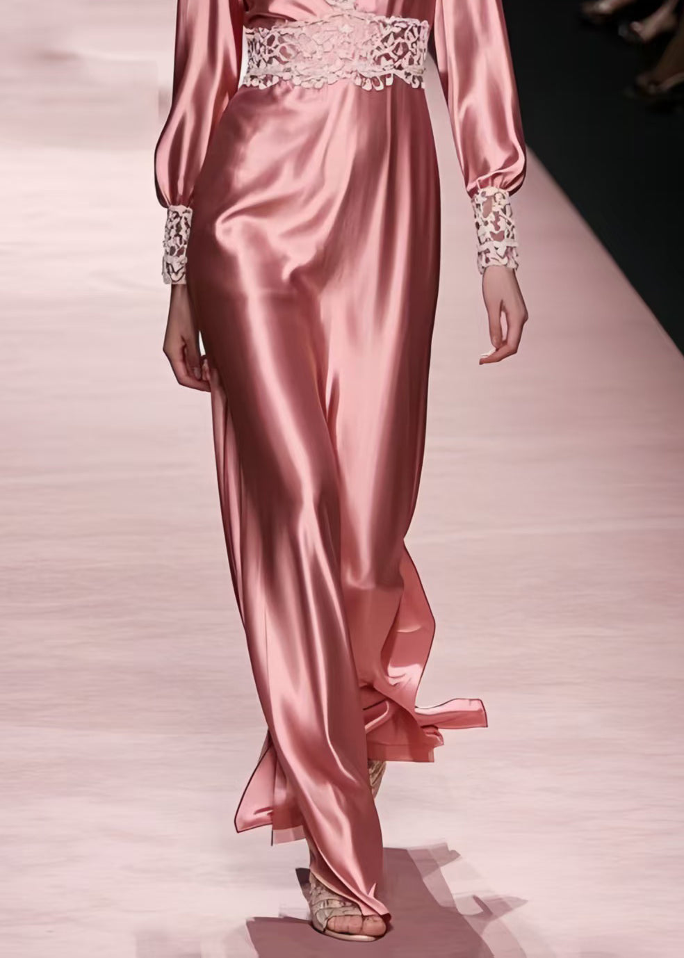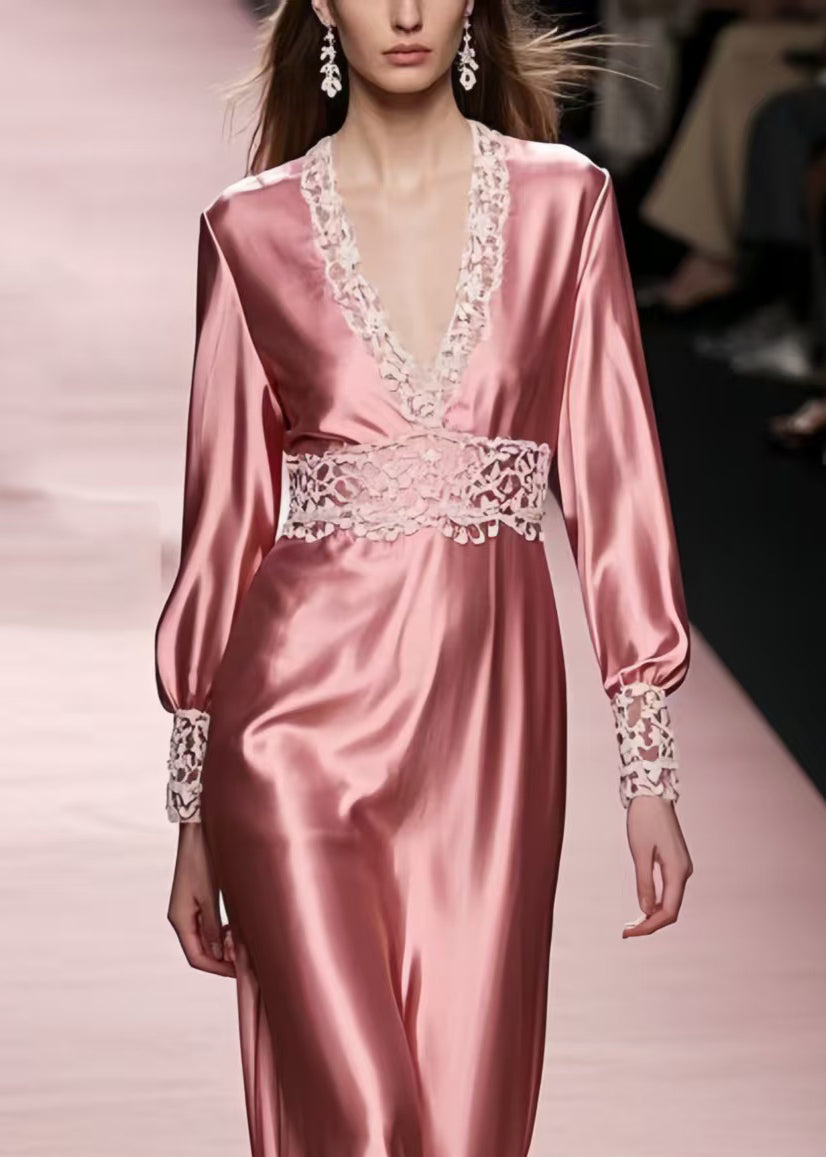 Silm Fit Rubber Red Lace Patchwork Draping Silk Dresses Spring