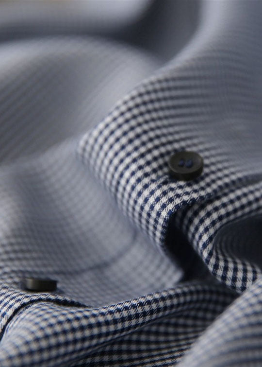 Simple Blue Plaid Peter Pan Collar Button Patchwork Cotton Shirts Bracelet Sleeve