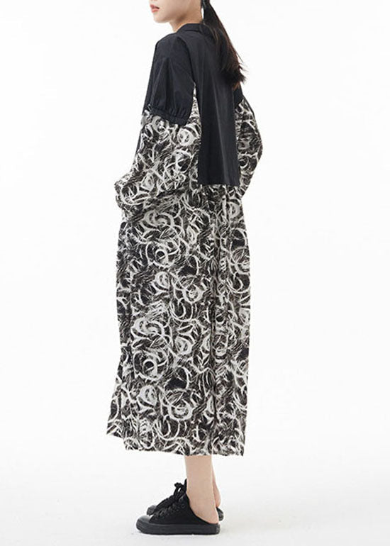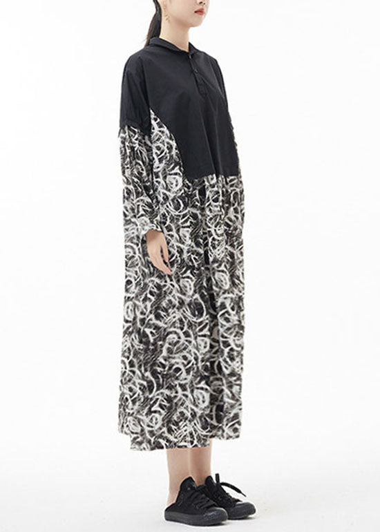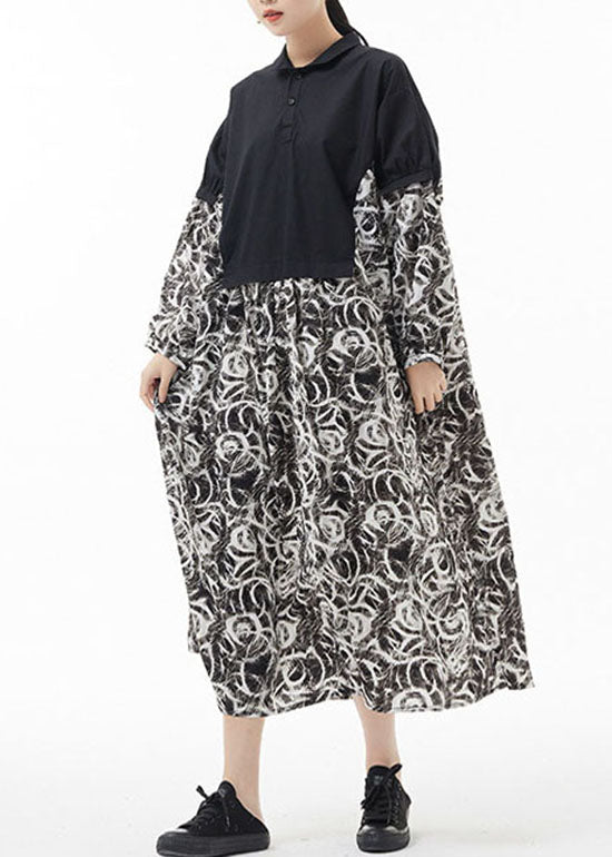Simple Colorblock Peter Pan Collar print Patchwork Chiffon shirt Dress Spring