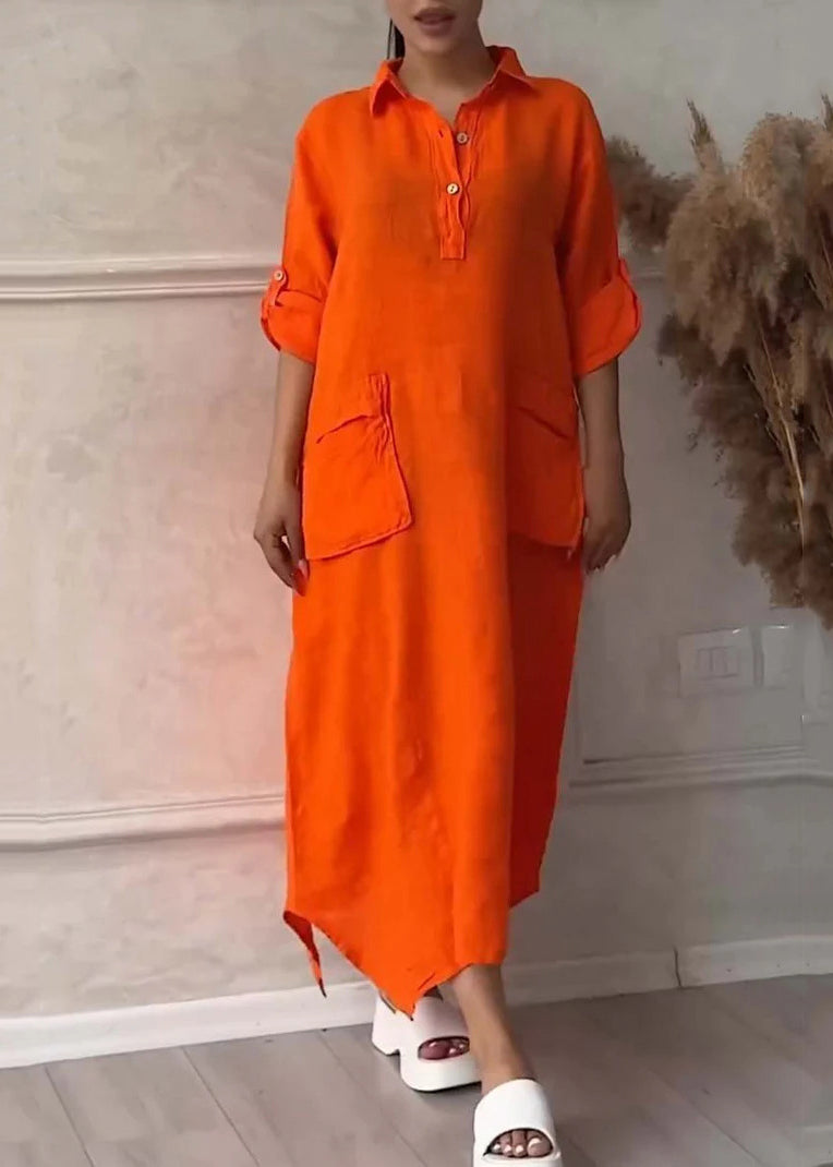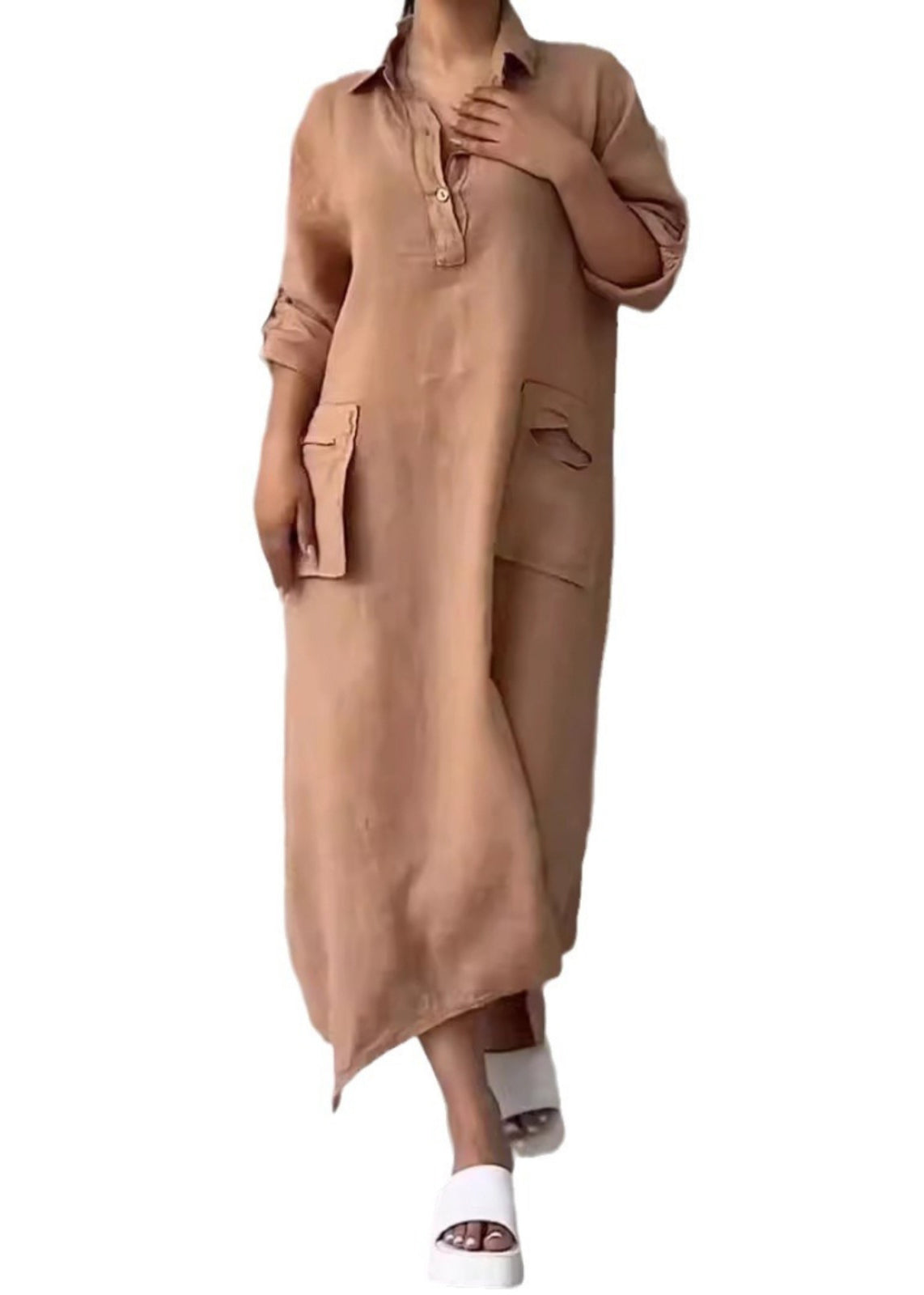 Simple Lavender Peter Pan Collar Pockets Linen A Line Dresses Summer