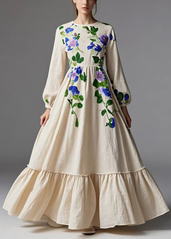 Simple Milk White Print Exra Large Hem Cotton Dresses Fall