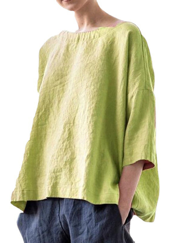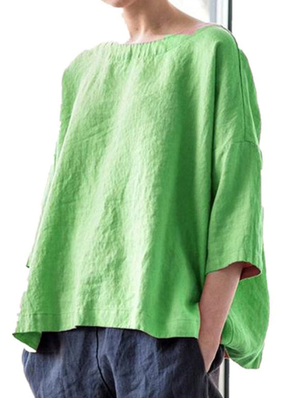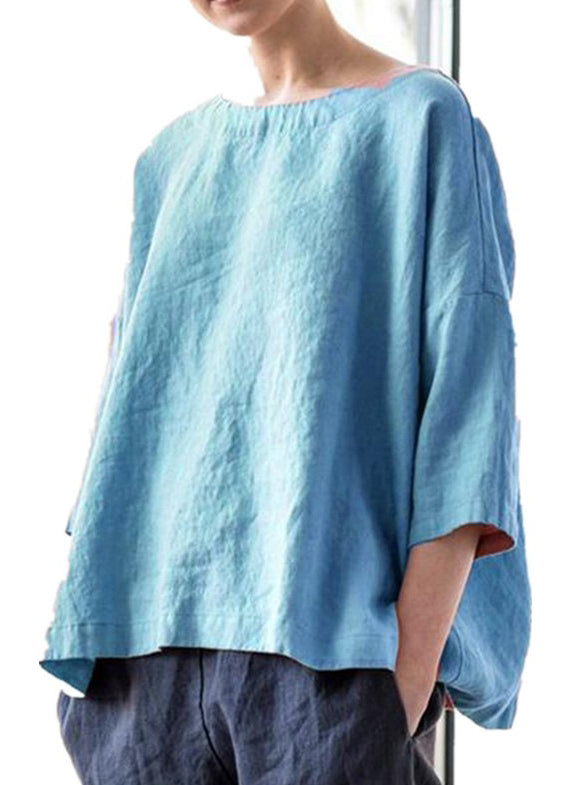 Simple Purple O-Neck Solid Cotton Blouse Bracelet Sleeve