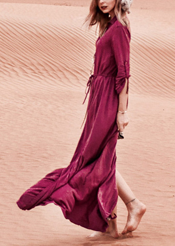 Slim Fit grey V Neck Tie Waist Button Ankle Holiday Dress Long Sleeve