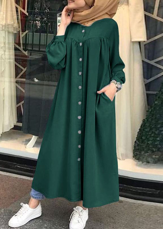 Solid Button Front Ruched Short Sleeve Crew Neck Maxi Dress Orange