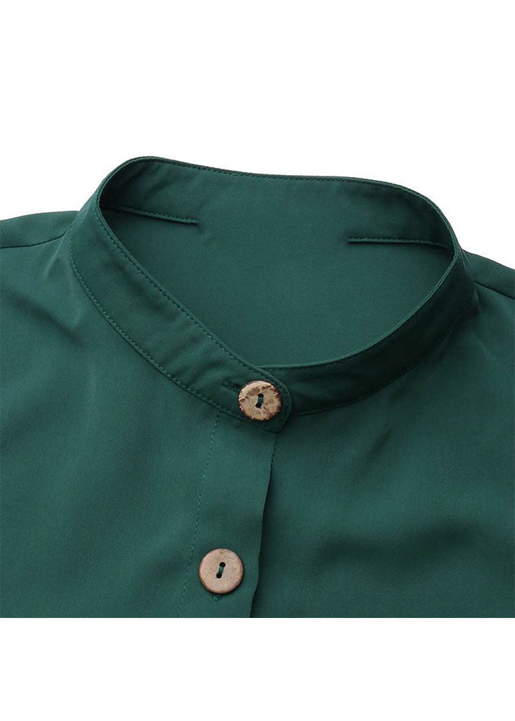 Solid Color Stand Collar Button Down Front Leisure Loose Maxi Dress with Side Pockets