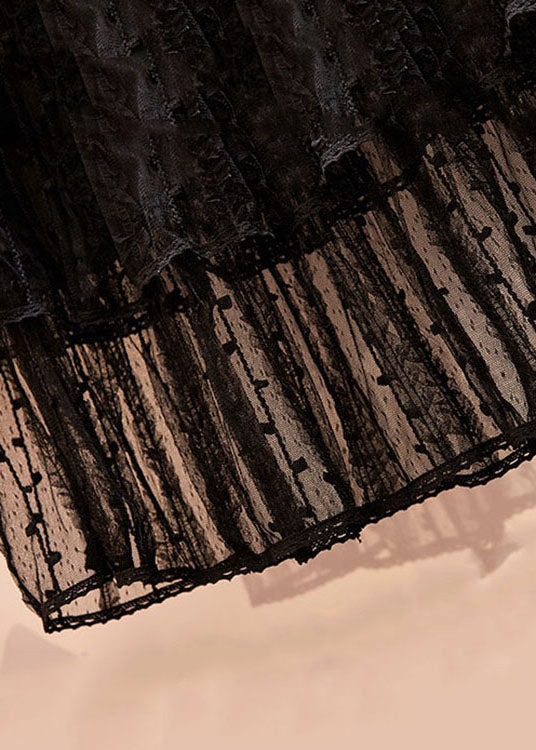 Style Black Ruffled Hollow Out Patchwork Tulle Skirts Summer