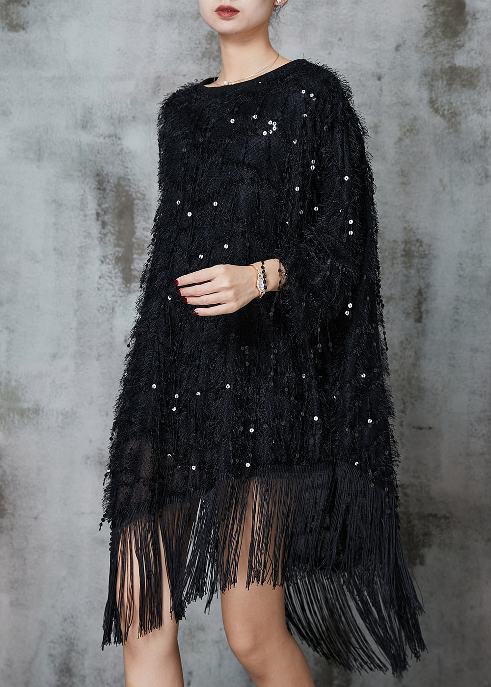 Style Black Tasseled Cotton Vacation Dresses Spring