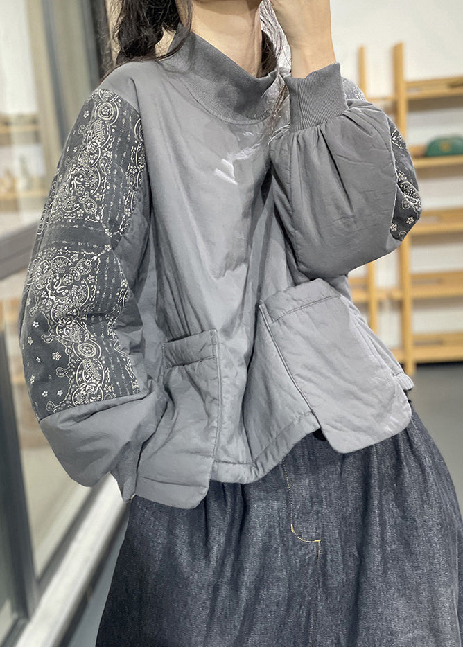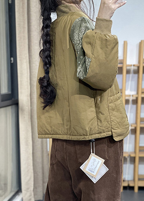 Unique Grass Green Turtle Neck Patchwork Pockets Fine Cotton Filled Pullover Streetwear Winter