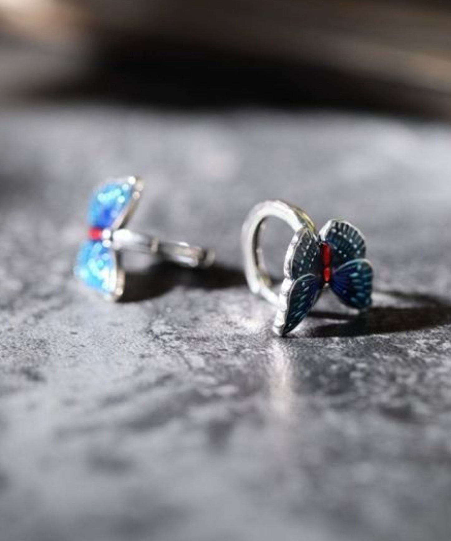 Made of fine Sterling Silver Butterfly Cloisonne.