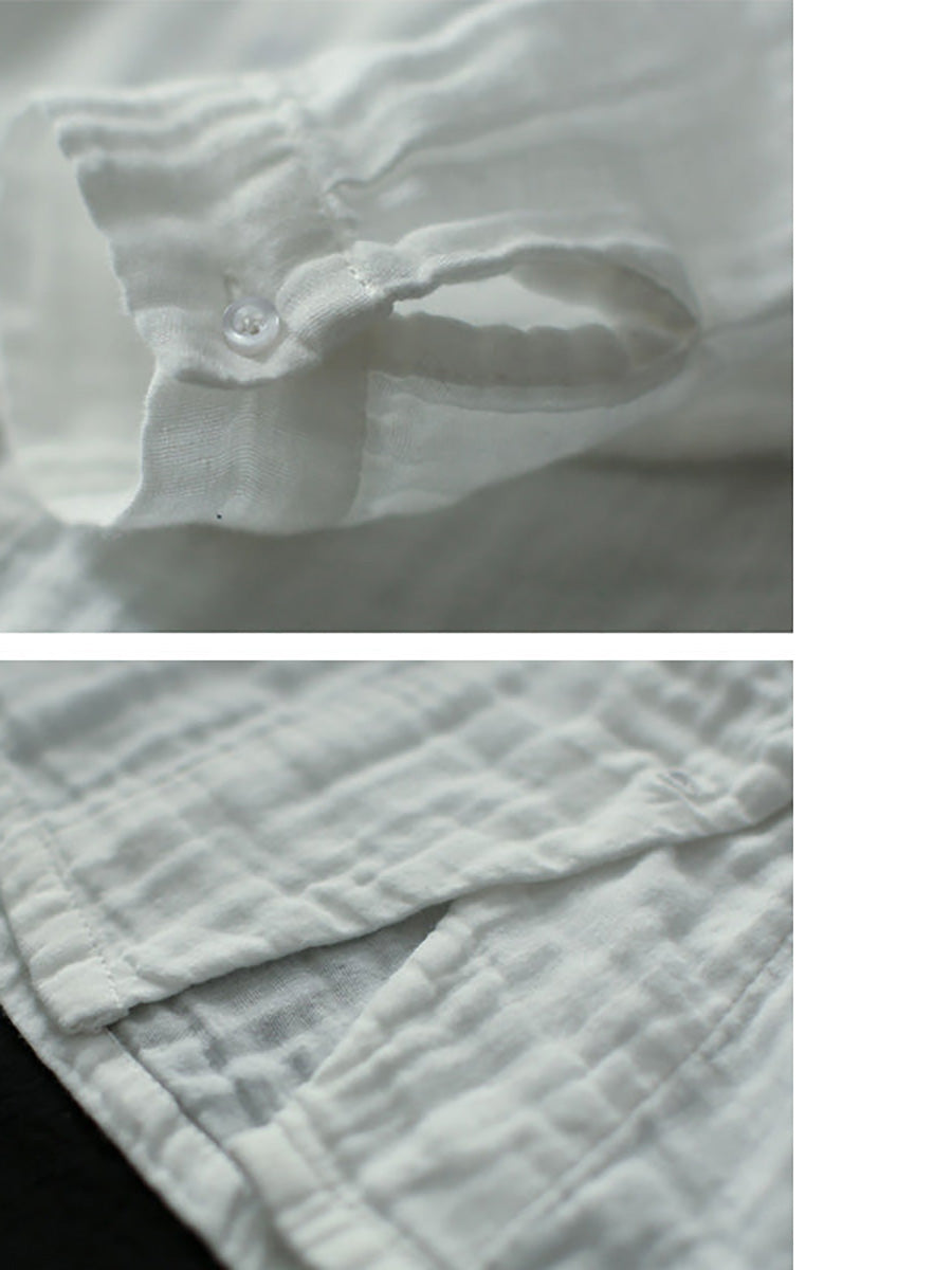 Plus Size - Retro Solid Color Long Sleeve 100% Cotton Shirt