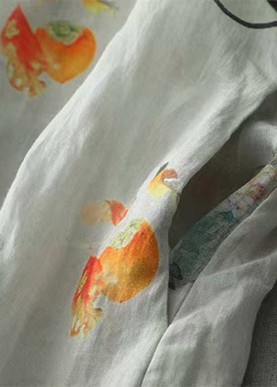 Vintage Green O Neck Print Chinese Button Cotton Dress Spring