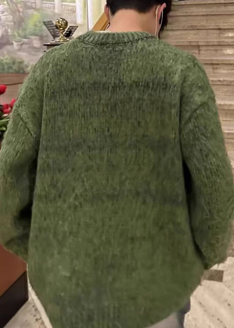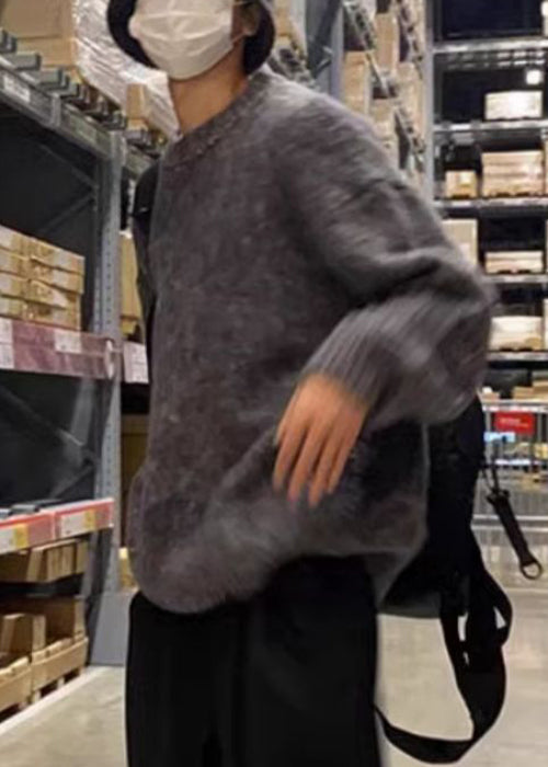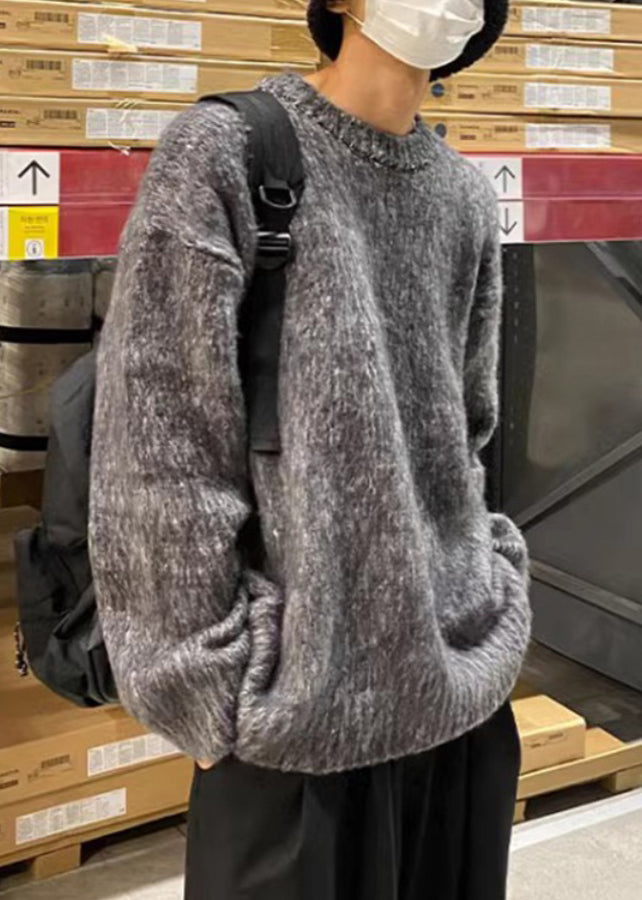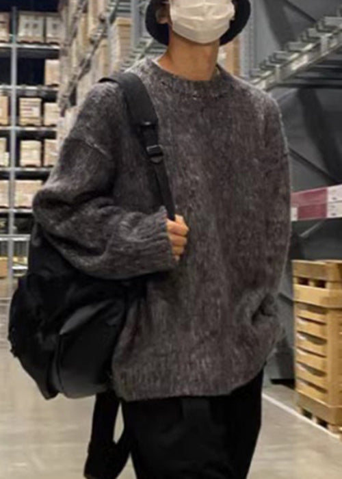 Vintage Grey O Neck Thick Cotton Knit Men Sweaters Spring