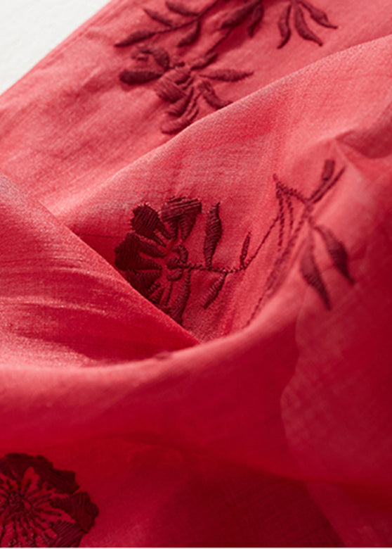 Vintage Red Stand Collar Side Open Layered Maxi Dress Short Sleeve