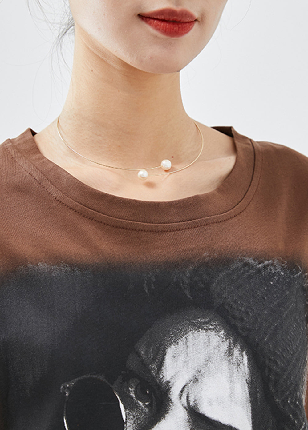 Women Coffee Oversized Print Cotton Maxi Dresses Summer