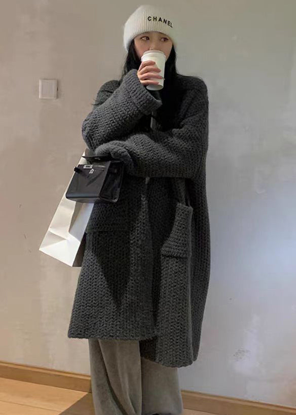 Women Pink Pockets Hollow Out Knit Cardigans Long Sleeve