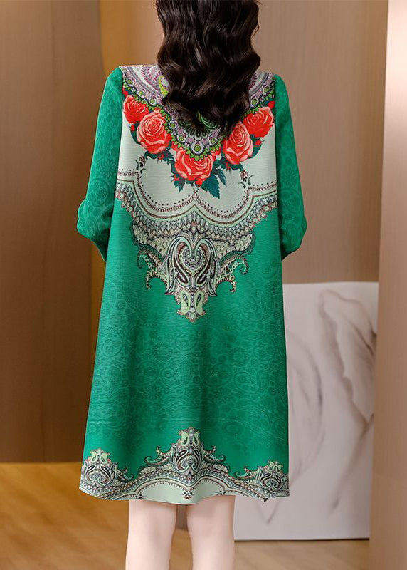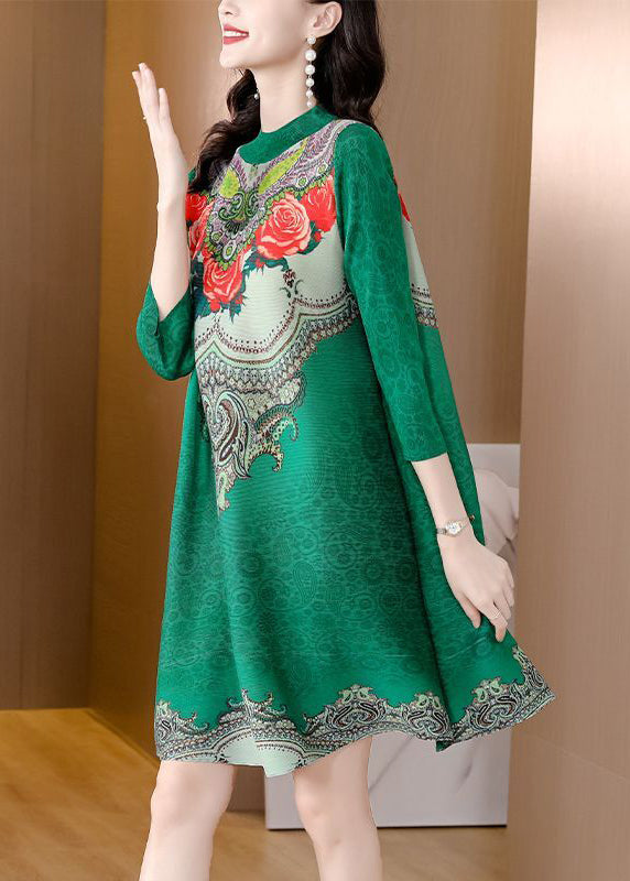 Women Purple Stand Collar Print Wrinkled Holiday Dress Bracelet Sleeve