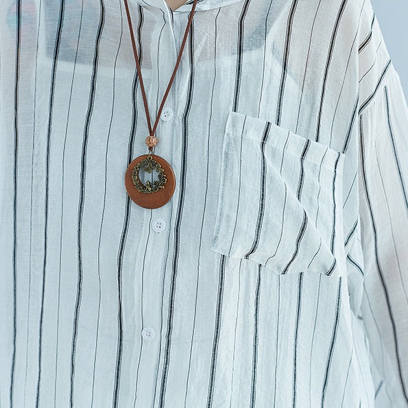 women white pure cotton dress casual dress women long sleeve Hooded striped clothing dress