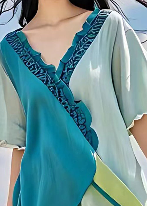 Art Blue Ruffled Low High Design Cotton Dresses Summer